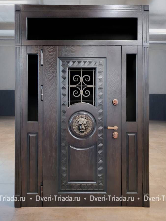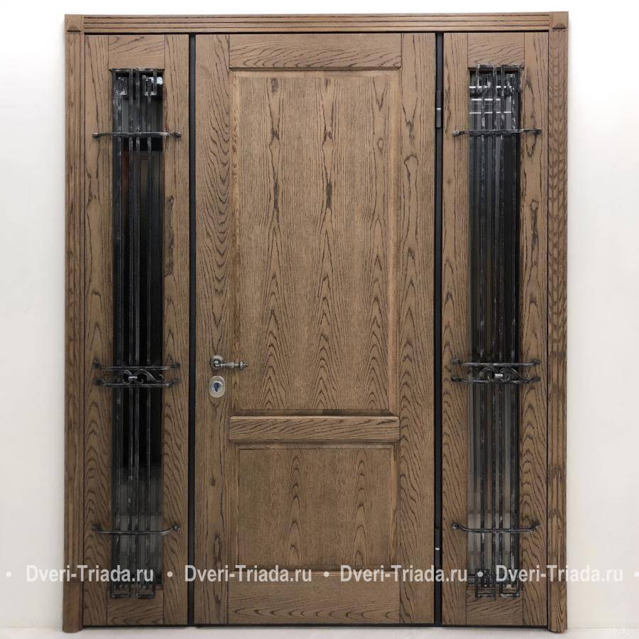 Металлическая остекленная термодверь с решеткой (фрезерованные панели МДФ ПВХ) Арт-636